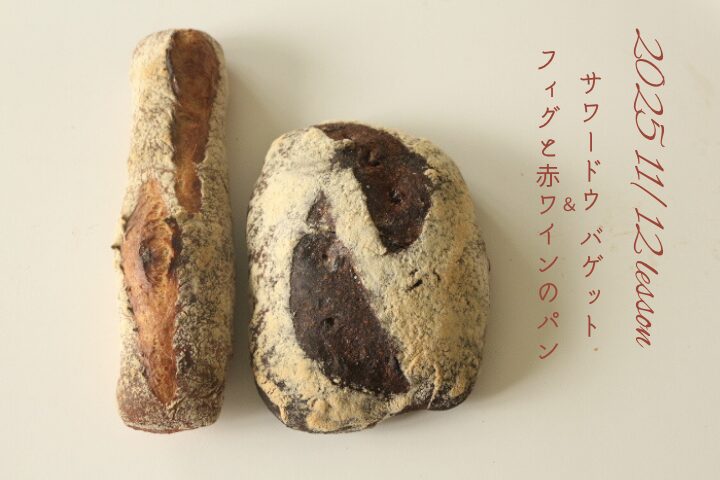 「自家製とパン」11・12月のレッスンは“サワードウ バゲットとフィグと赤ワインのカンパーニュ(ホシノ酵母)”の2種類です。