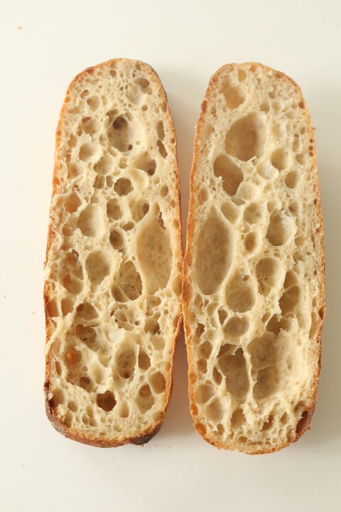 粉と水だけの発酵種“サワードウ”を使ったバゲットです。、粉の風味を感じられ、程よい酸味があり、噛みしめるほどに美味しく、自宅で種をつくれるという点も大きな魅力です。工程に時間はかかりますが、ぜひマスターしていただきたいおすすめのパンです。!お持ち帰り用生地あり。